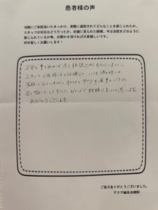 スタッフ2名様はとても優しく、いつも帰る時には笑顔になっていました。