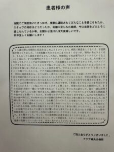 治療を受けることで体だけではなく、心も軽くなっていくことを感じていました。夫も言っていますが、夫婦で通わせていただくのが楽しみの一つになっていました。