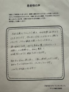 毎回私の悩みに寄り添い、丁寧に施術してくださります。