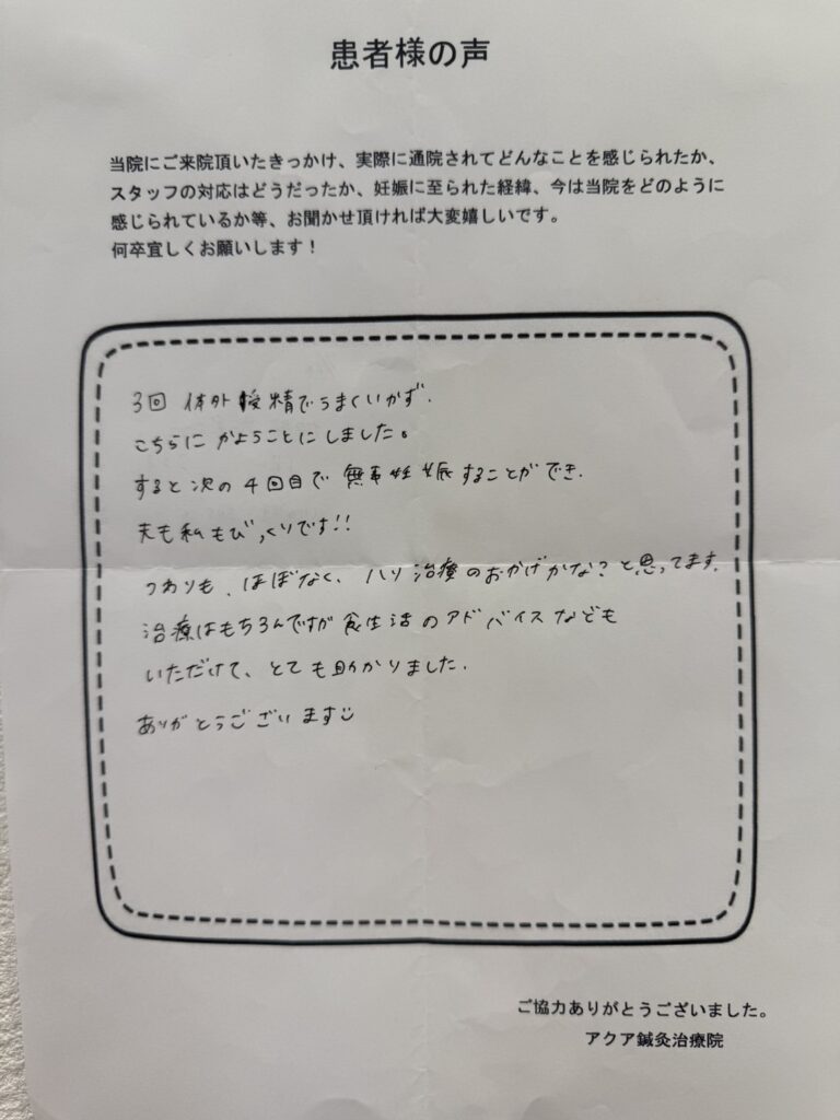 つわりも、ほぼなく、ハリ治療のおかげかな?と思ってます。